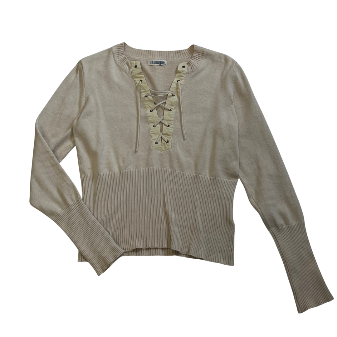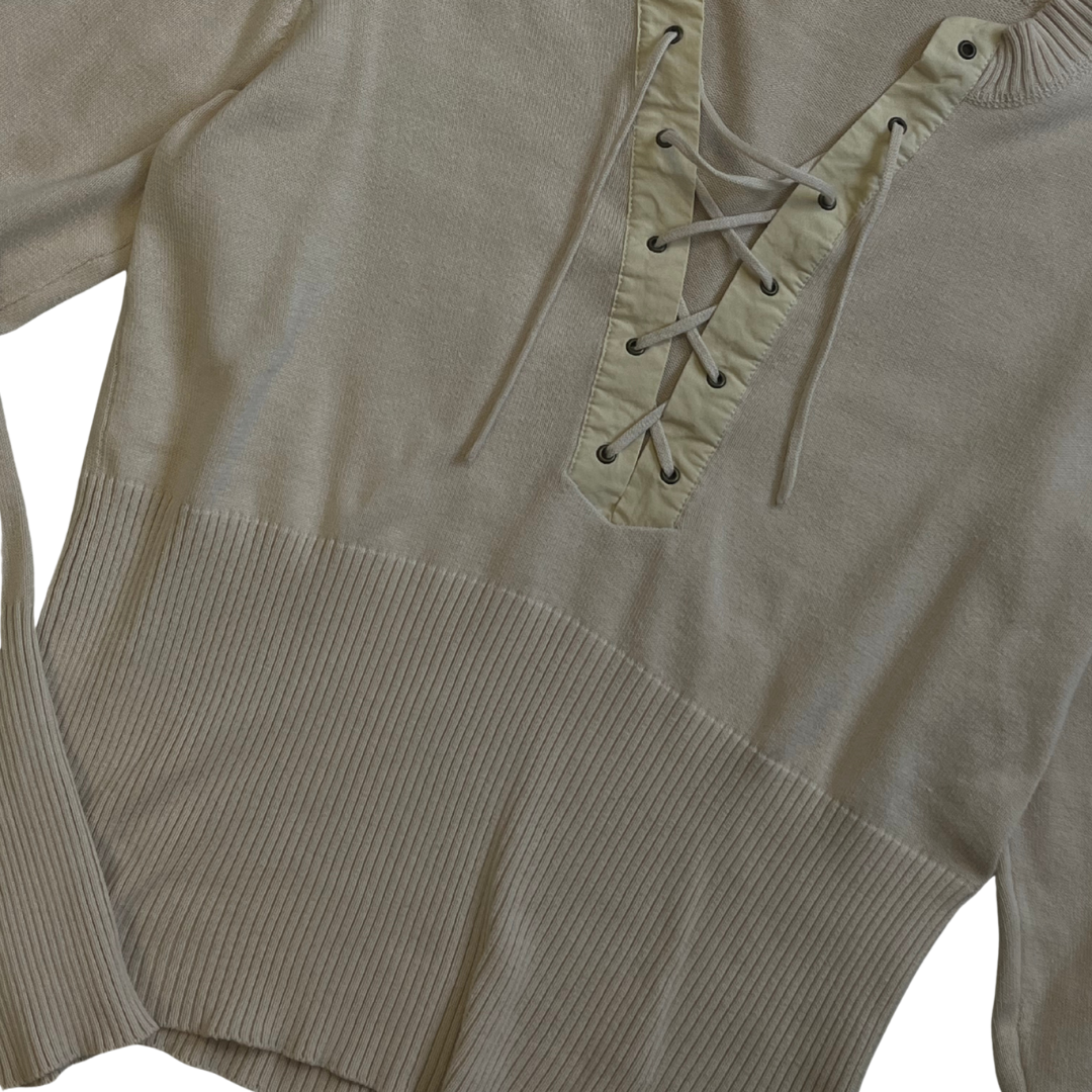 Cream Lace Up Knit