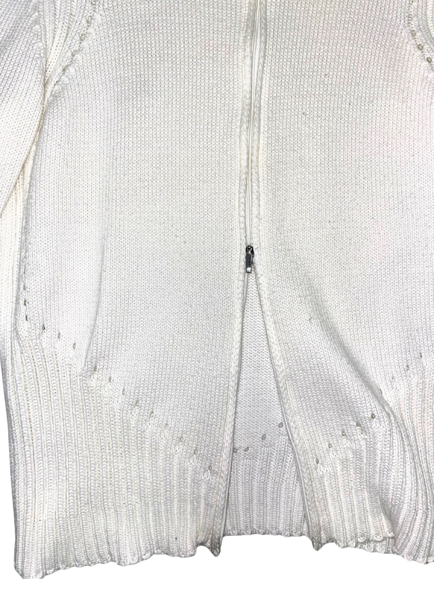 White Cotton Knit Zip Up