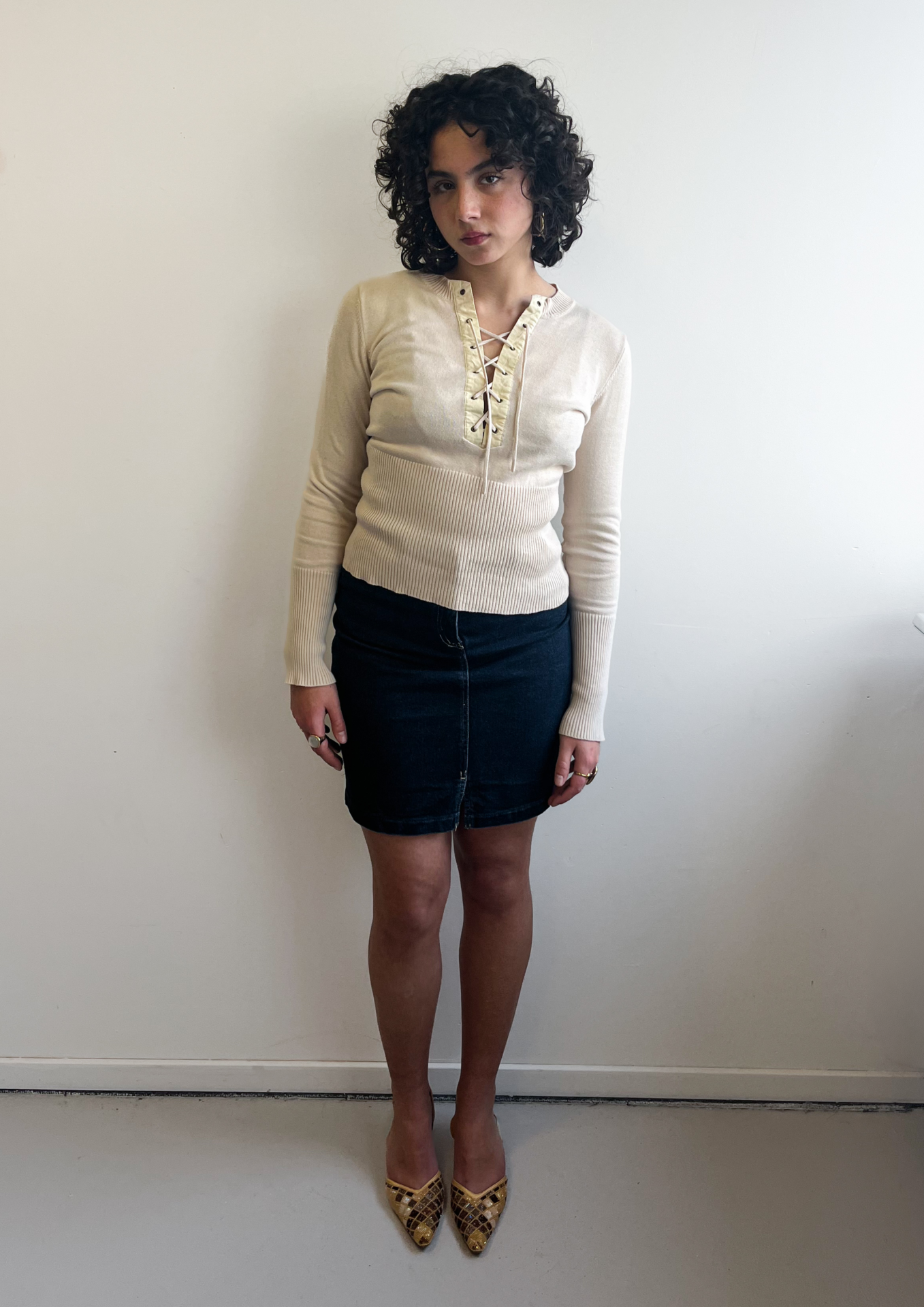Cream Lace Up Knit